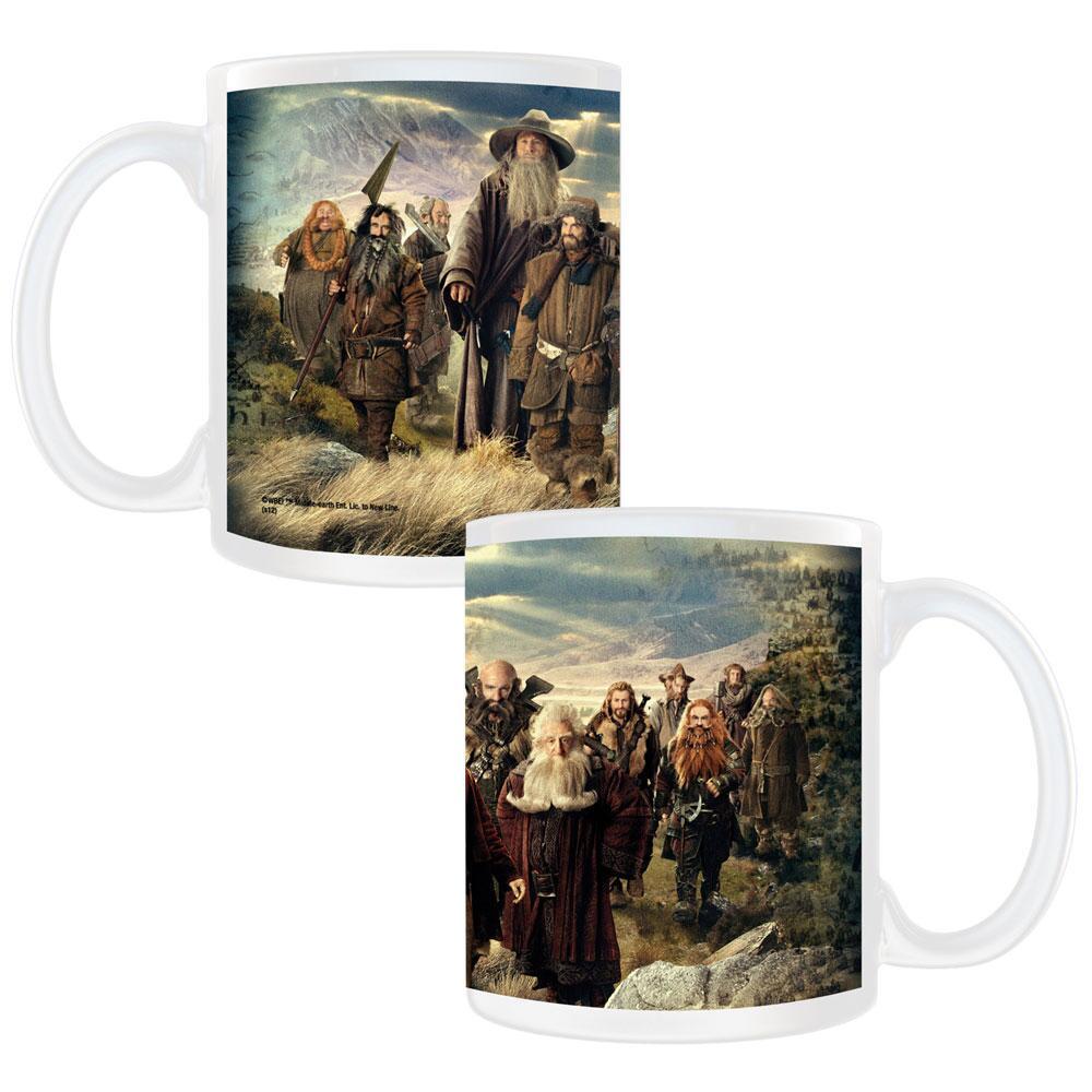 Our exclusive, this mug features a striking image of Bilbo, Gandalf™ the Grey, Thorin Oakenshield and the dwarves from The Hobbit: An Unexpected Journey. This white ceramic mug holds 11 ounces of your favorite hot or cold beverage and is microwave and dishwasher safe.