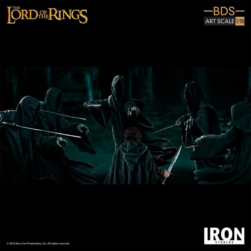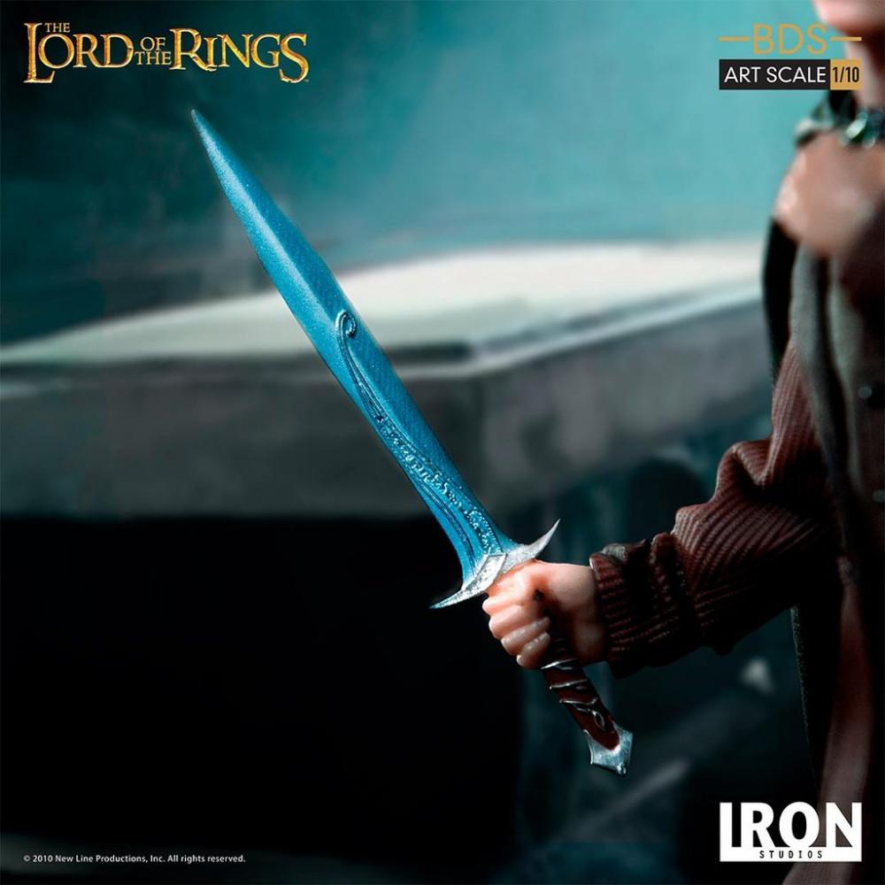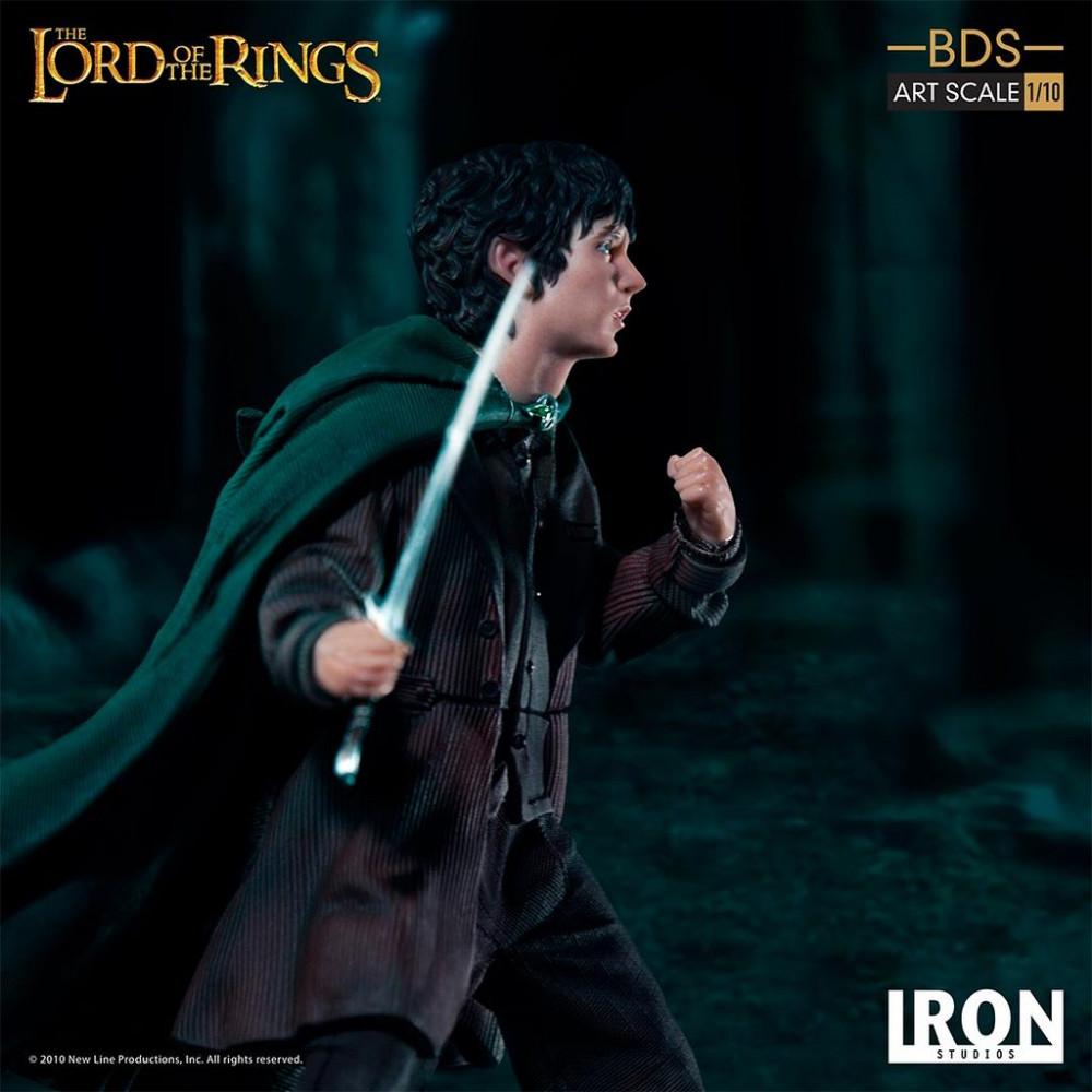 Made in polystone and hand painted, this Frodo statue brings characteristic details that represent the character throughout the trilogy, like the Sting and the Leaf of Lórien. Frodo can be displayed individually, as well as part of a battle diorama along with the Nazgul Kings (sold separately), based on the Weather Top sequence, or even together with his fellows of the Ring (sold separately) to compose a BDS based on the Moria sequence.