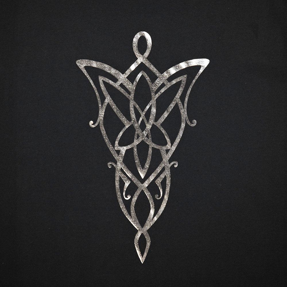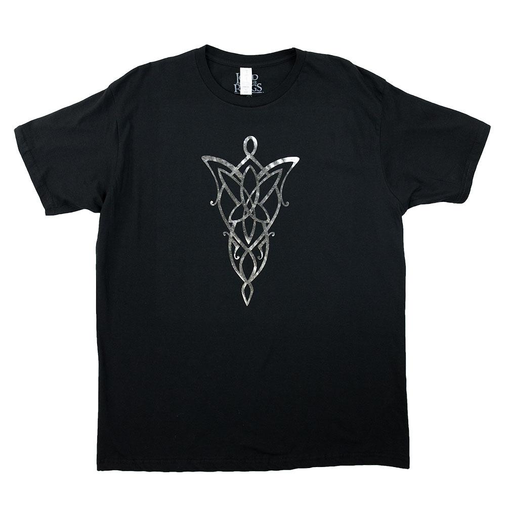Our exclusive! Arwen's Evenstar pendant is printed using silver foil, allowing it to shine brightly in this unique t-shirt. 100% cotton