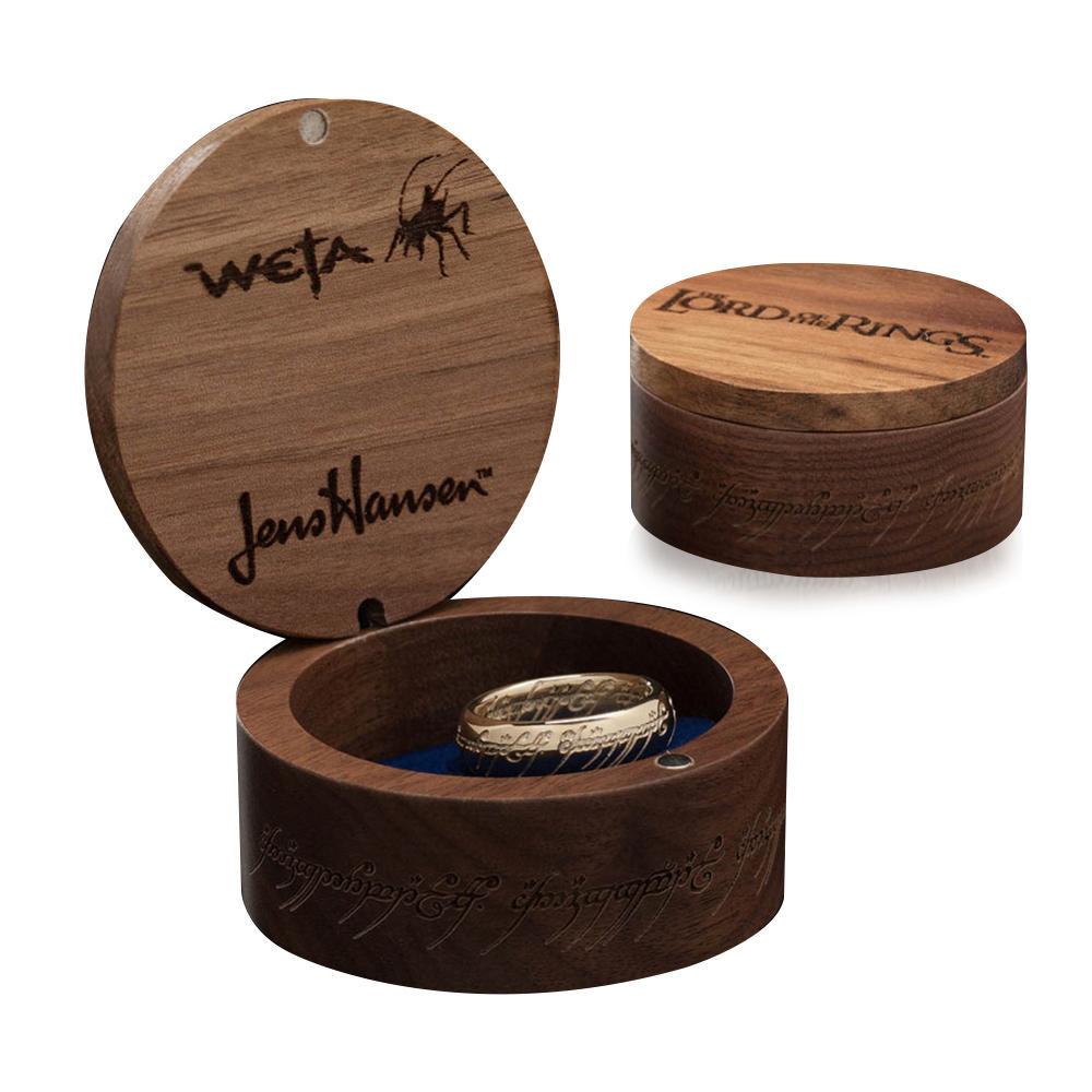 This gorgeous piece of jewelry has the famous words in ancient Elvish runes engraved on the inside and outside of the ring, as well as on the beautiful wooden gift box made from natural Walnut timber. The box can be displayed open thanks to an ingenious and almost invisible elastic hinge or closed with a strong rare-earth magnet.