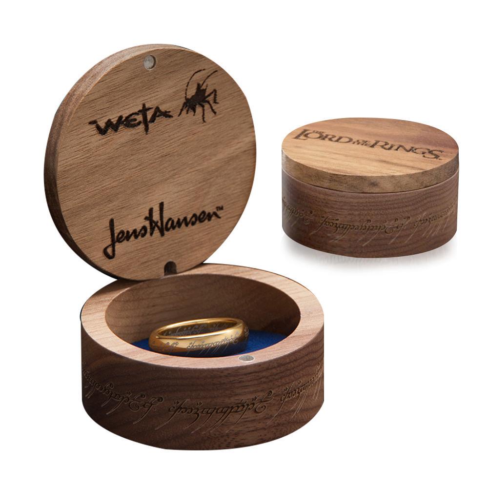 This gorgeous piece of jewelry has the famous words in ancient Elvish runes delicately engraved on the inside and outside of the ring, as well as on the beautiful wooden gift box made from natural Walnut timber. The box can be displayed open thanks to an ingenious and almost invisible elastic hinge or closed with a strong rare-earth magnet.
